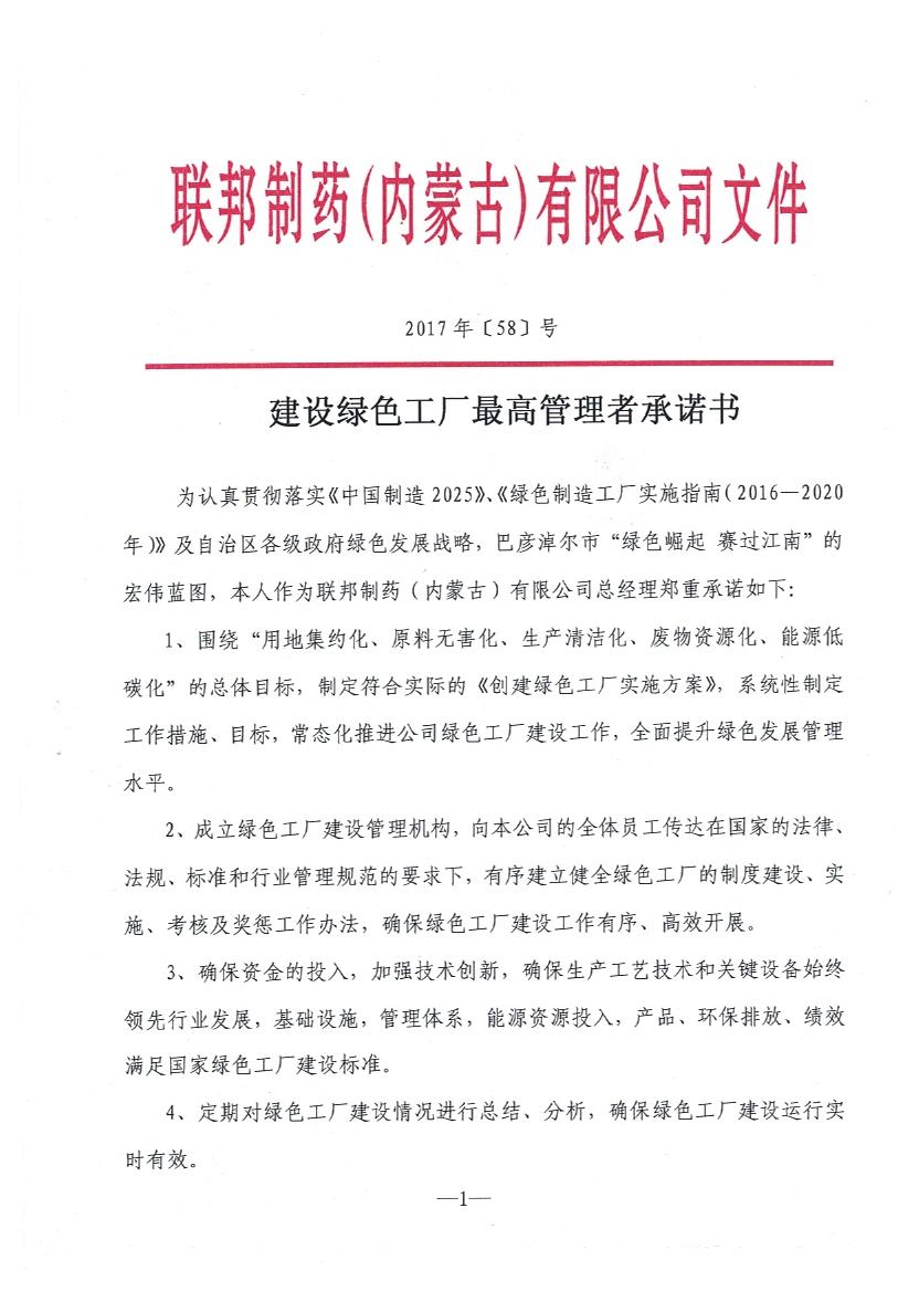 聯邦製藥(內蒙古)有限設立社會責任管理審核委員會決定書