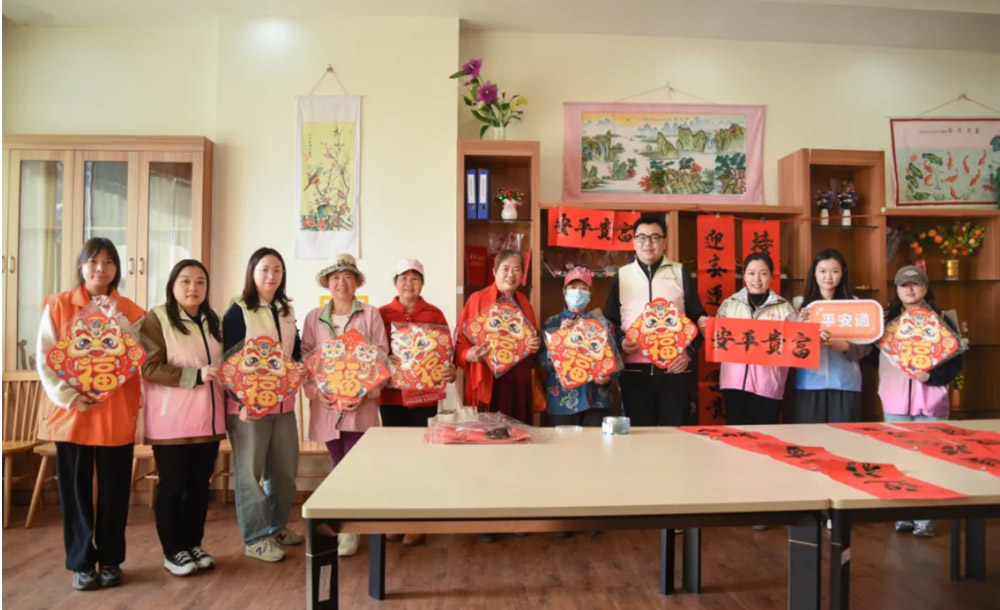On January 21, the TUL Filial Piety Swallows team visited the Home Care Service Center in Qianwu Town to decorate the rooms for the Spring Festival and donate caring materials to the elderly.