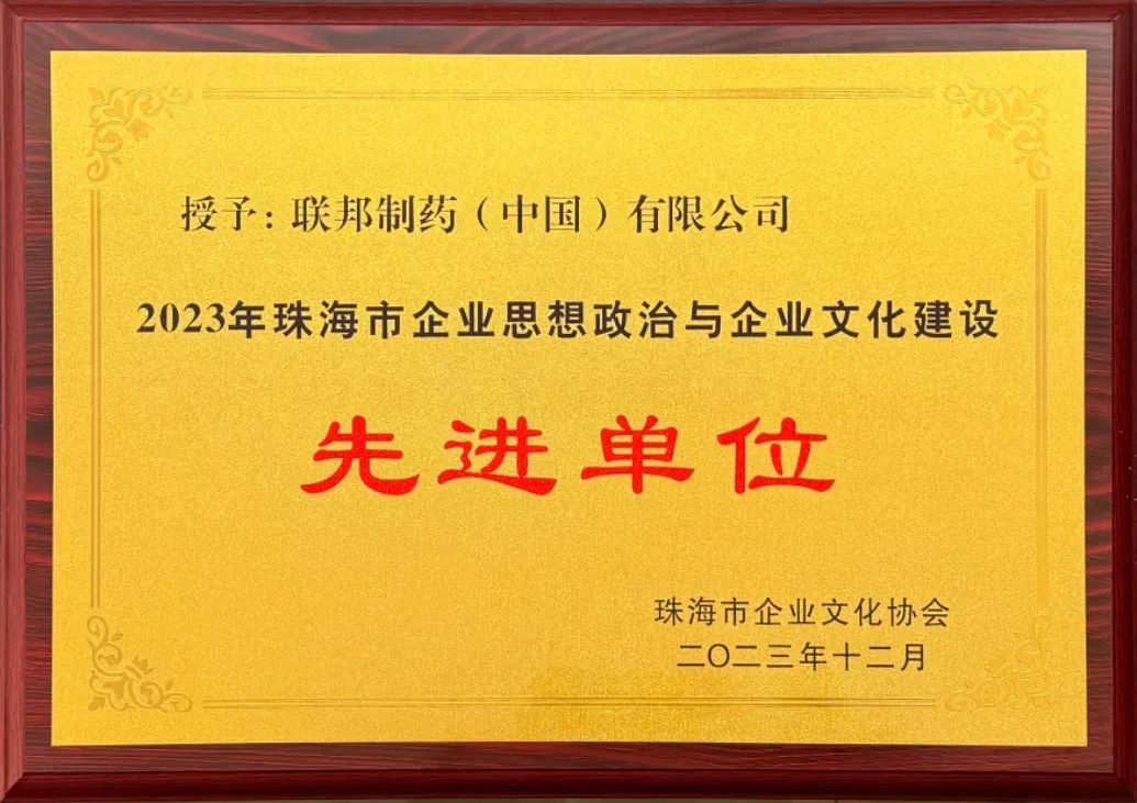 聯邦製藥榮獲「2023年珠海市企業思想政治與企業文化建設工作先進單位」
