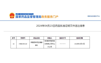 聯邦製藥(內蒙古)有限公司原料藥他唑巴坦獲批上市