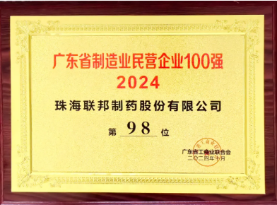 喜訊そ聯邦製藥上榜「2024廣東省製造業民營企業100強」榜單