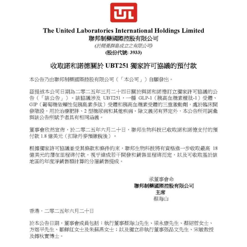 聯邦製藥收到諾和諾德1.8億美元預付款