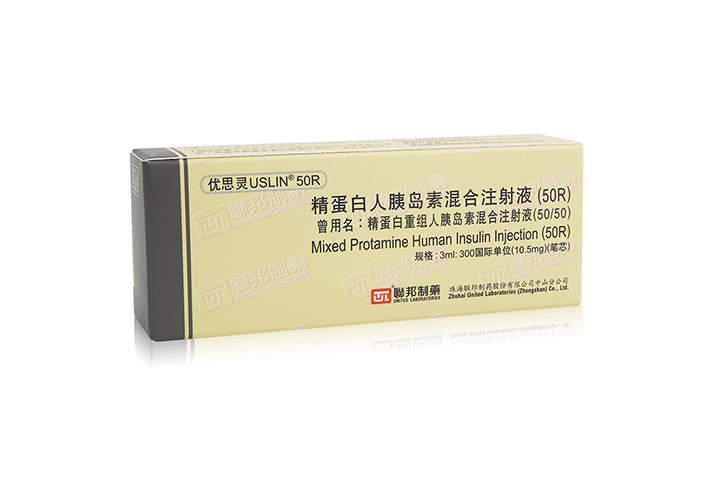 【通用名稱】精蛋白人胰島素混合注射液(50R)